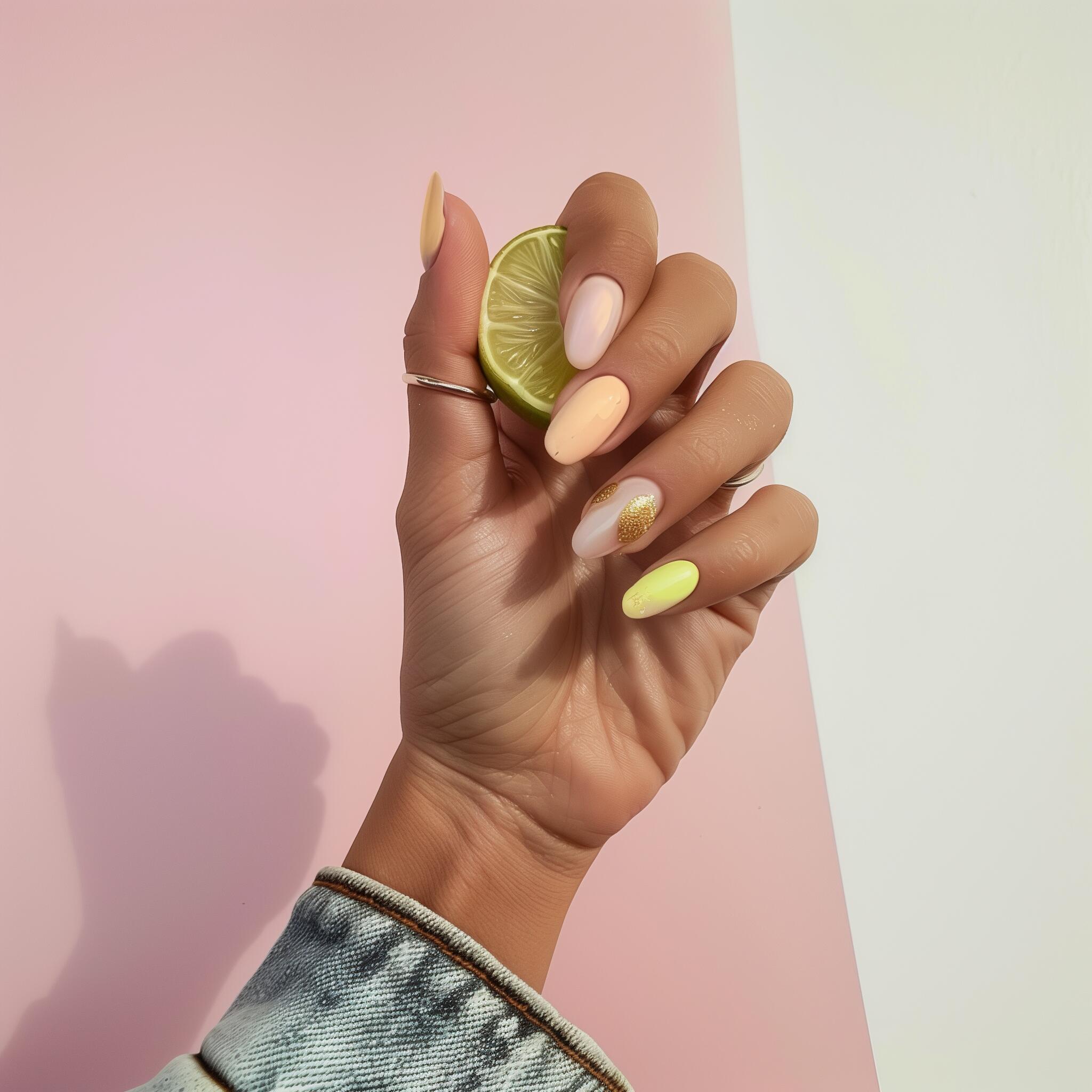 Glistening tips, a canvas of dreams, where colors dance and beauty gleams.
